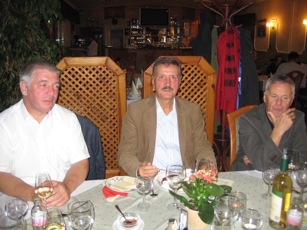 Ebédidőre Hainburgba értünk. Part menti vendéglőben magyar pincérek szolgáltak ki. Endre és Zoli bécsi szeletet – jó vékony volt – Sanyi pangasziusz harcsát evett. A bor és sör nagyon csúszott rá.