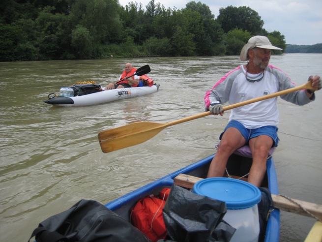 Aztán már osztrák területen hajóztunk, ismét sokat kellett evezni, szinte álló vízben.