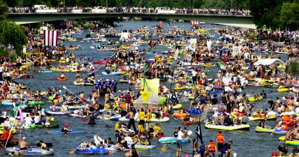 19:30 indulás, végig a Nabada útvonalán, integetés, és folyik itt a Duna…