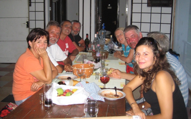 Fürdés és bajaival vetélkedő halászlé. Jött Zoli rokonsága pogácsával, gyümölccsel és piával, Soós Árpi és Marcsi diópálinkával, sok piával és süteménnyel. Kellemes este volt, de még nem volt vége. Zoli nélkül a fiúk felmentek a közeli pincesorra Németh Jóskához borozásra. Bepiálva értek vissza, mindenki jól aludt.6. péntek